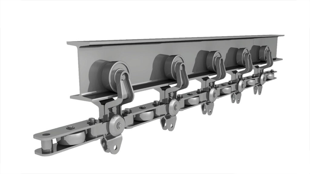 Overhead conveyors are suspended systems that transport materials across production lines, maximizing floor space. They are ideal for moving items efficiently in complex layouts.